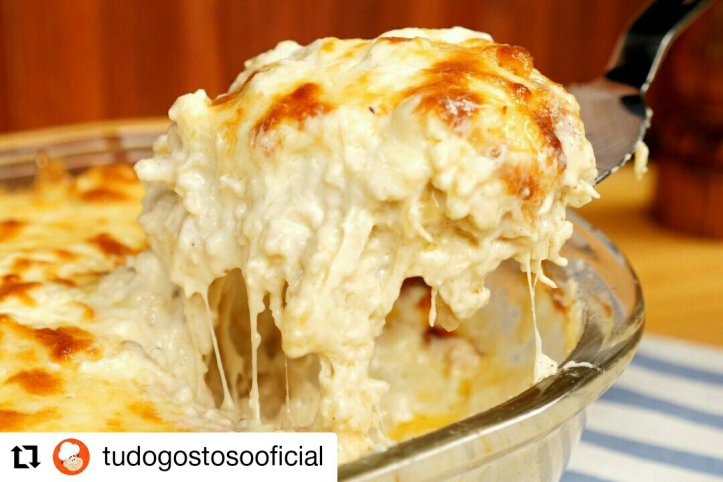 Adicione o resto do requeijão e cubra com o restante da mussarela.⠀