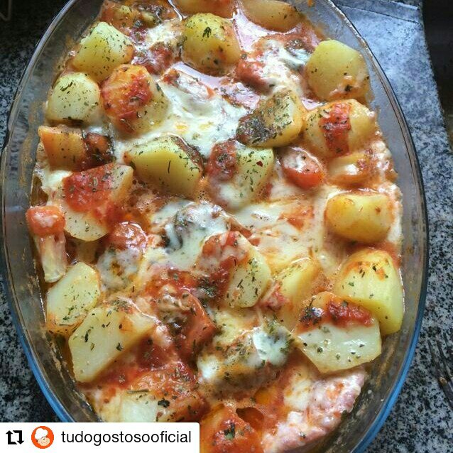 Leve ao forno até derreter o queijo, a batata estar mole e a linguiça cozida.